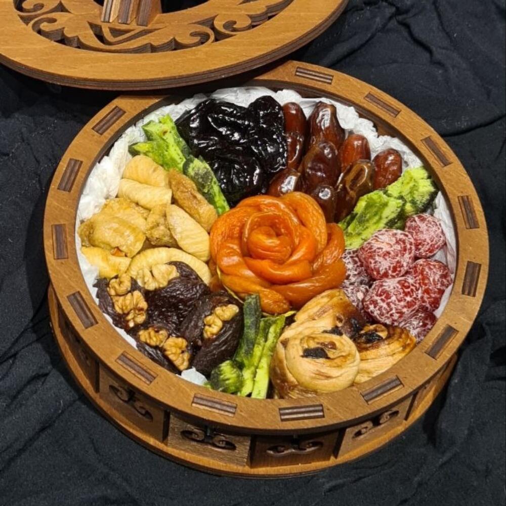Fig - 80 g Dried apricots - 100 g Prunes - 60 g Dates - 76 g pamela - 55 g hashtag melon - 100 g хаштаг курага - 91 g алча - 69 g