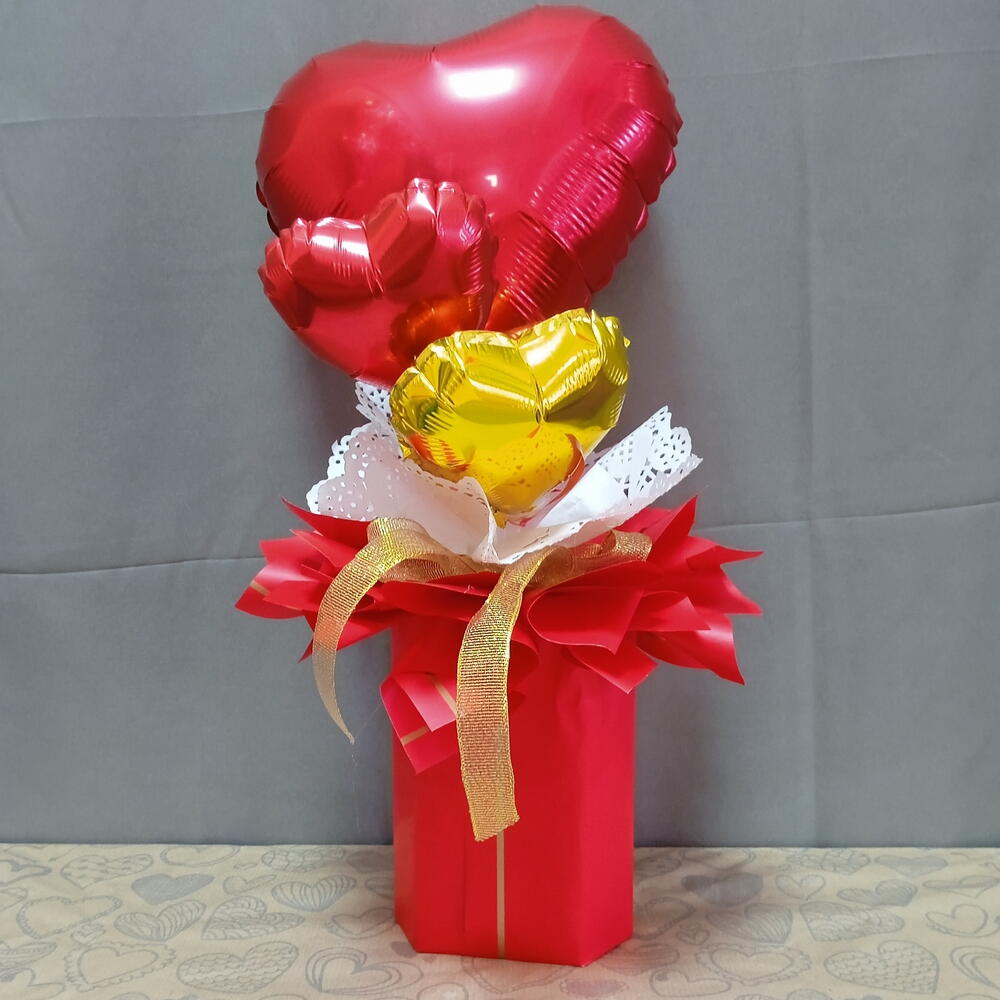 designer paper - 1 pcs candies in a box "french truffle"130g - 1 pcs foil heart 10" - 1 pcs foil heart 5" - 2 pcs