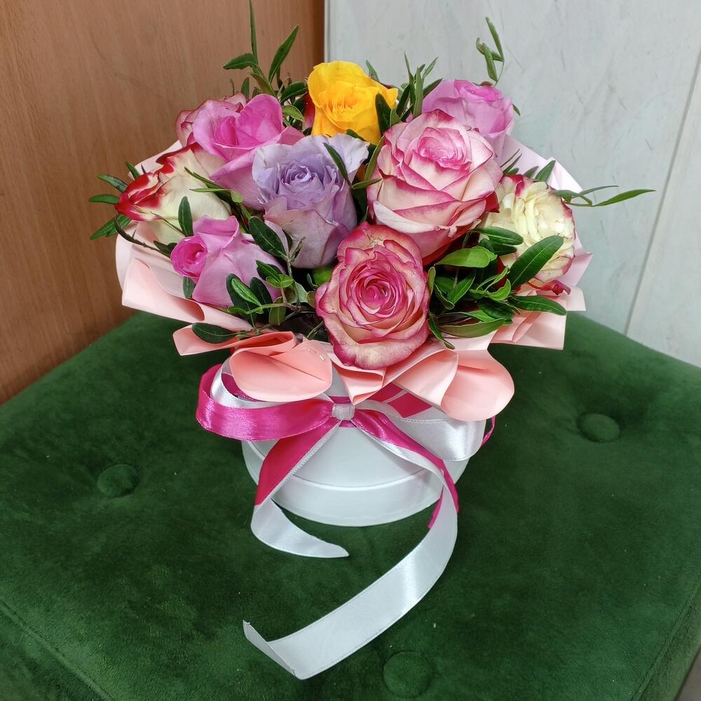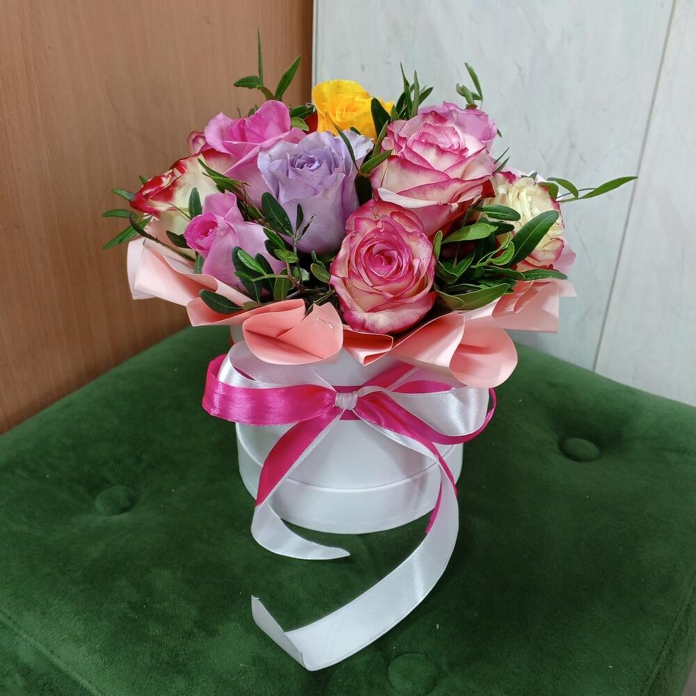 Oasis - 1 pcs Pistachio - 1 pcs Hatbox - 1 pcs rose kenya 40 cm - 11 pcs