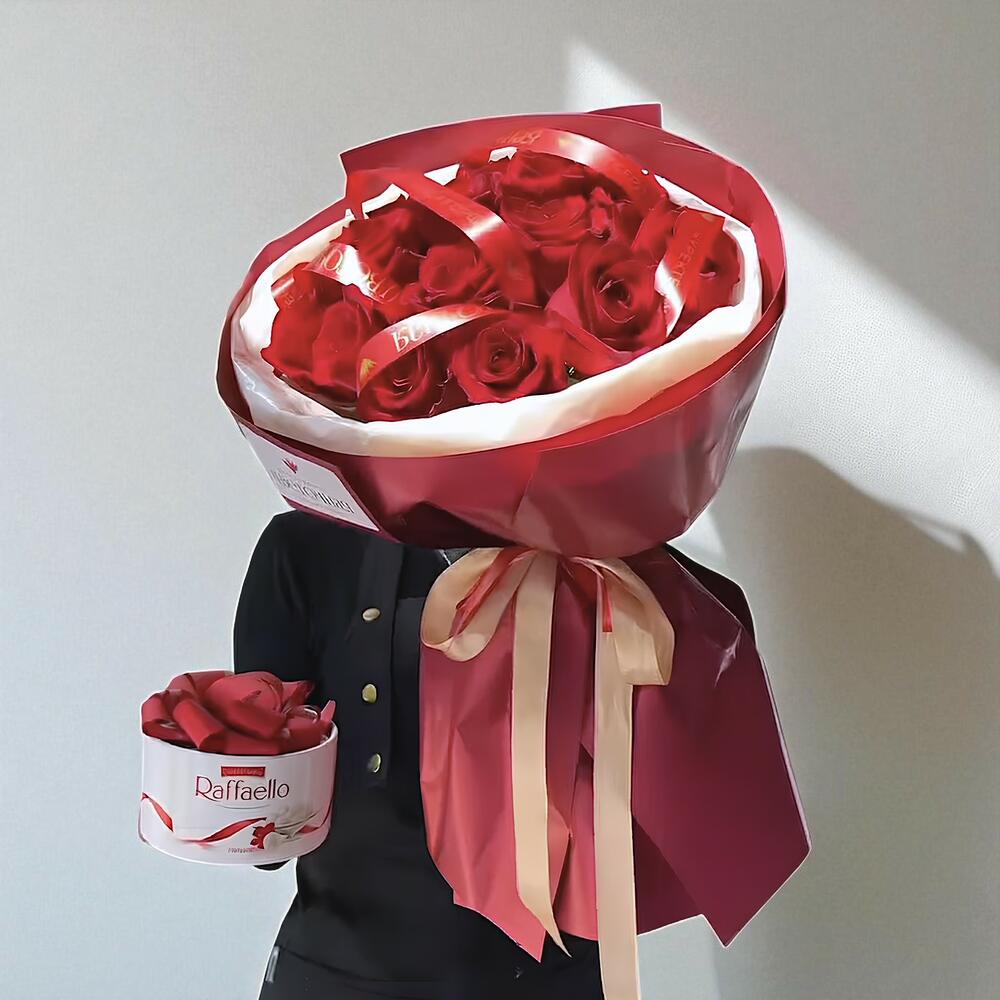 Изысканный монобукет, состоящий из 15 пышных красных роз эквадорского происхождения, всегда будет актуальным знаком внимания. В дополнение к букету идет изысканная коробка конфет Раффаэлло - прекрасное дополнение, которое приятно удивит и порадует получателя. Этот набор станет идеальным подарком на любой праздник или продемонстрирует ваши искренние чувства в обычный день.