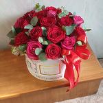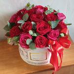 Eucalyptus - 2 pcs Hat box - 1 pcs roses ecuador - 21 pcs