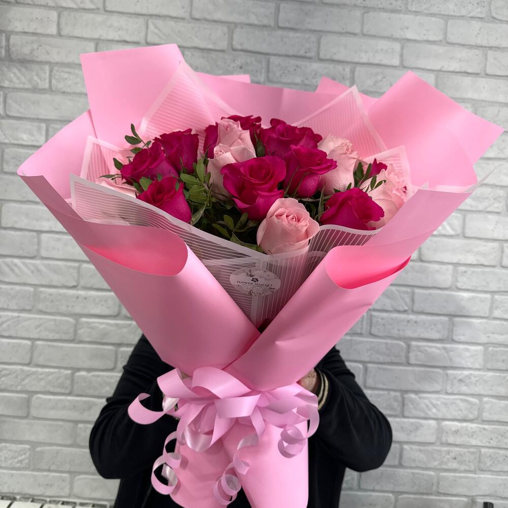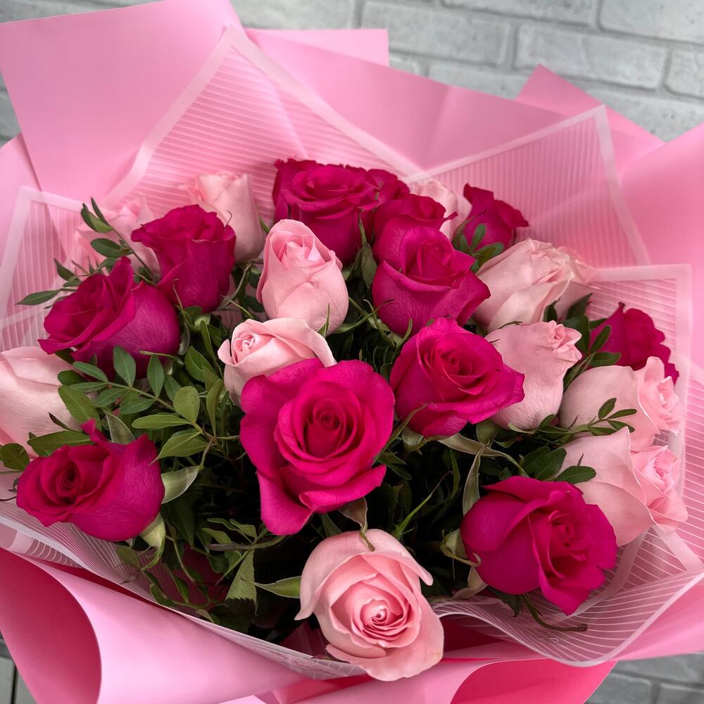Микс букет из роз с добавлением зелени