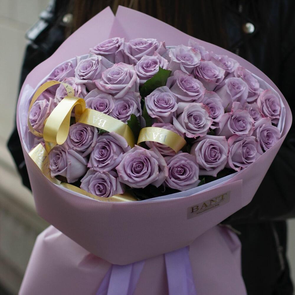35 роз сиреневых