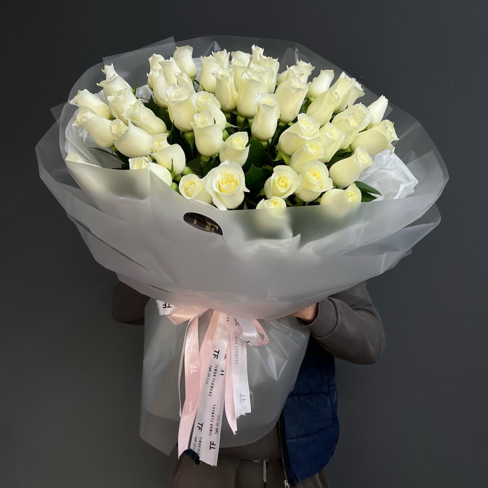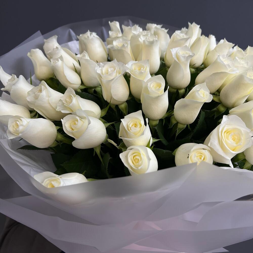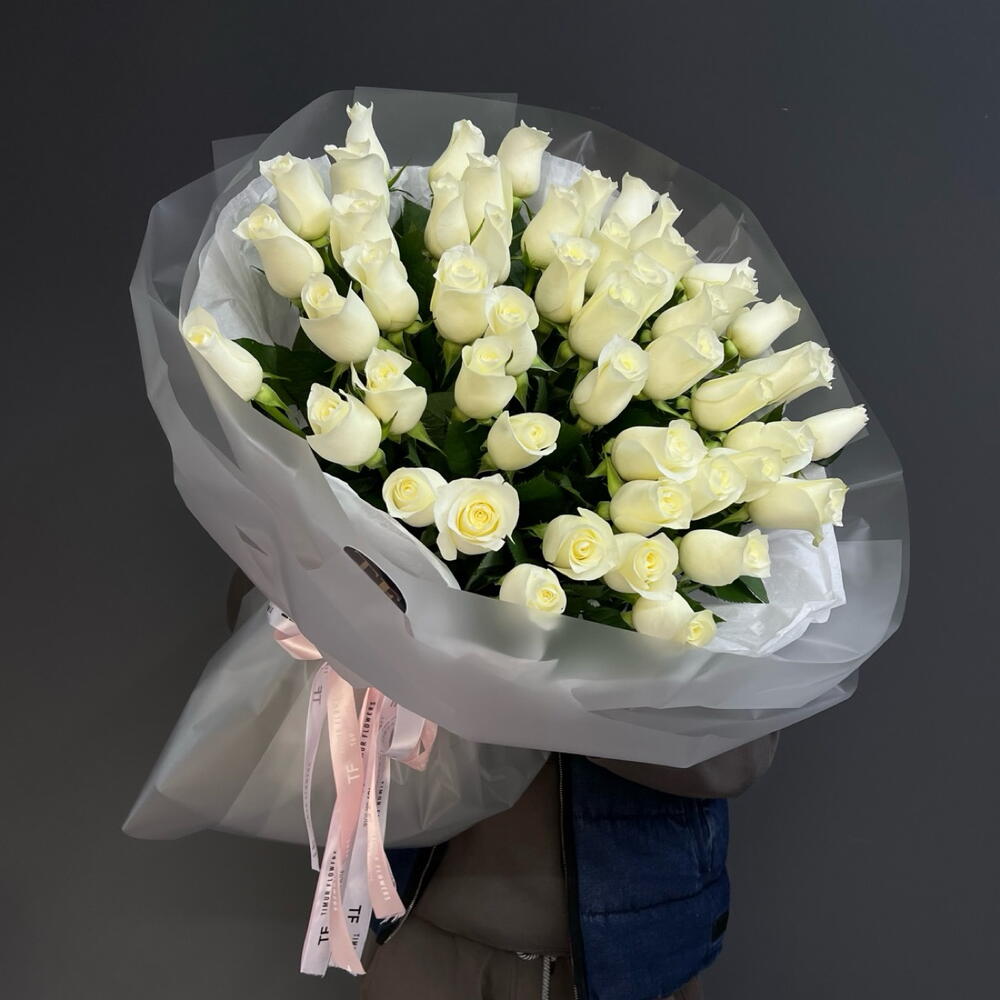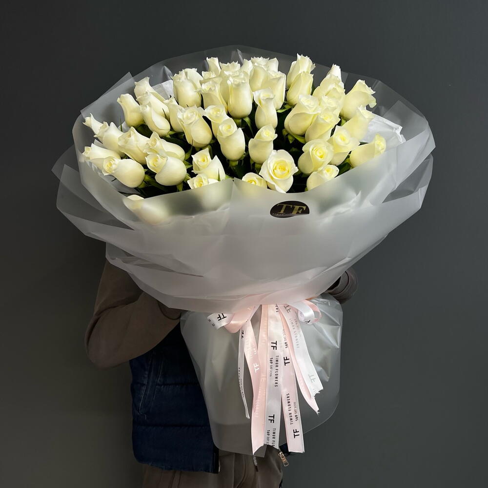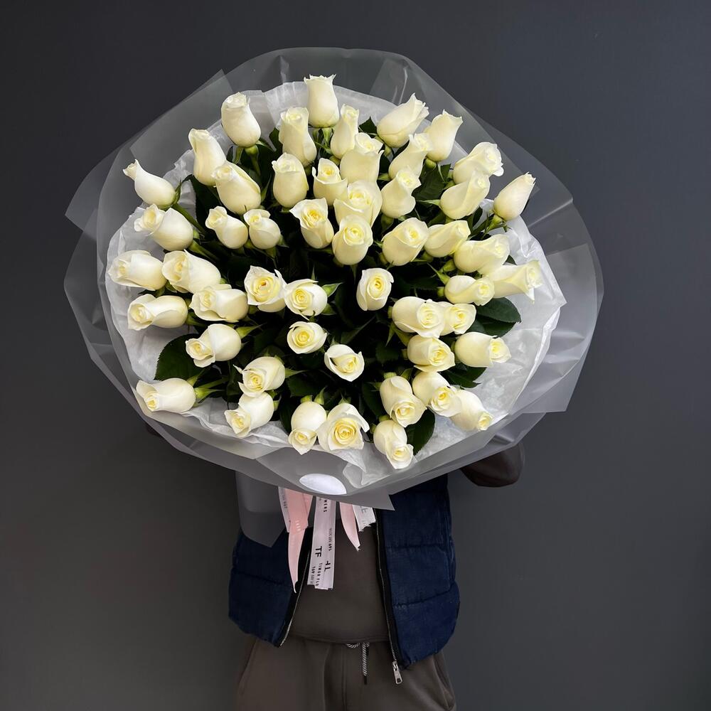 51 белая Роза в премиальном оформлении