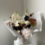 Anthurium - 3 pcs Phalaenopsis Orchid - 1 pcs Bush rose - 4 pcs Rose - 3 pcs exotic greens - 4 pcs дельфиниум или схожий высокий цветок - 2 pcs антуриум (лист) - 1 pcs