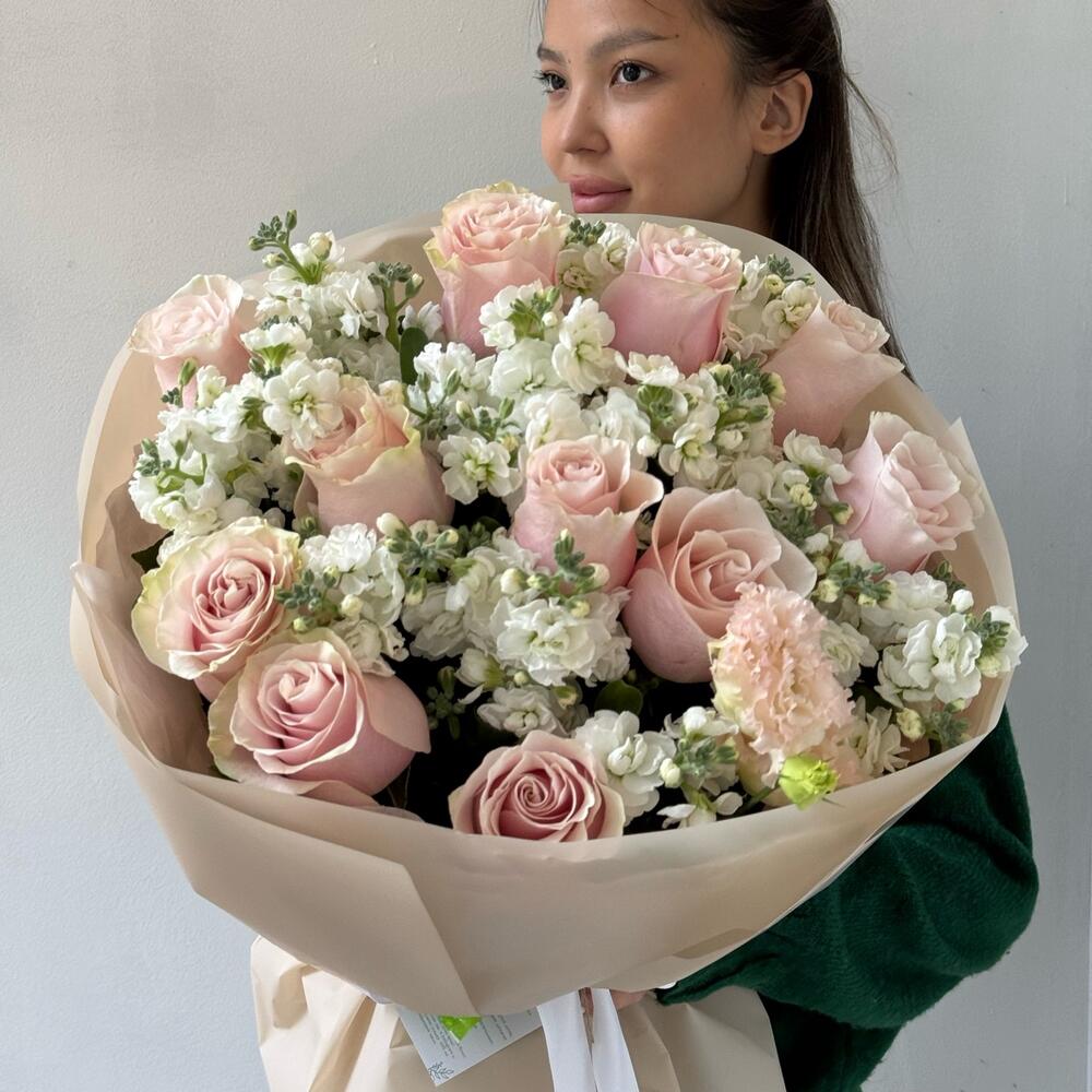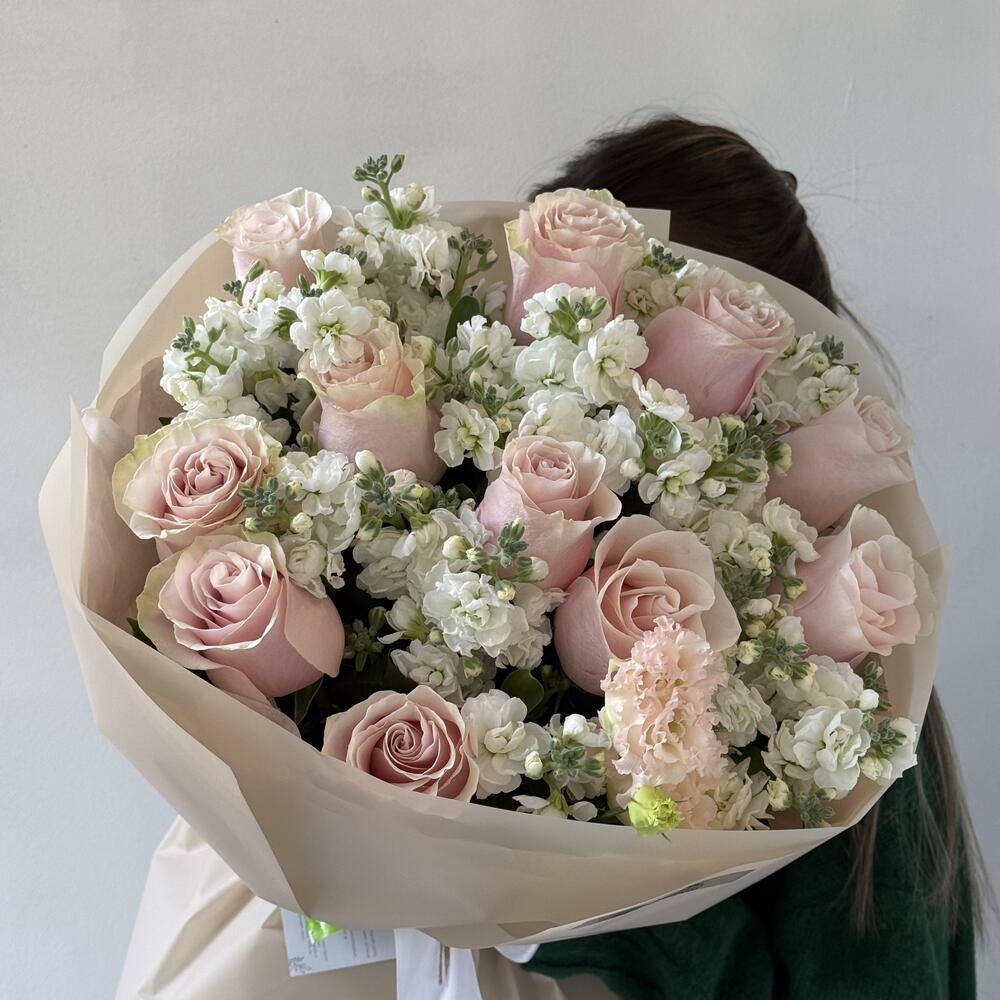 Matthiola - 9 pcs Ecuador Rose - 11 pcs Designer packaging - 1 pcs