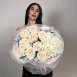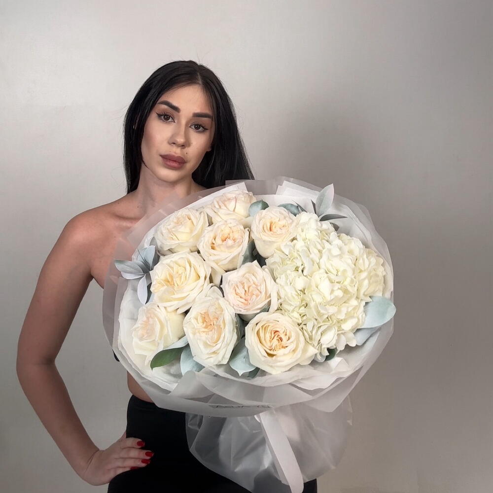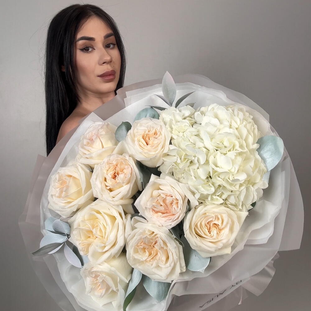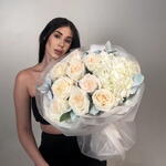 Delicate, lush euro-style bouquet in shades of white A great choice for a birthday, a date, or a surprise just because. 📏 Bouquet diameter ~60cm 🎁 Beautiful packaging included