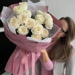 Моно букет с белоснежными розами в авторской упаковке