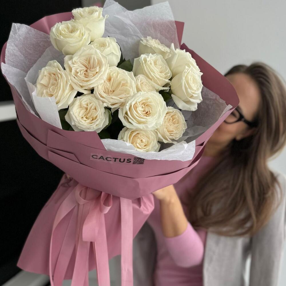 Моно букет с белоснежными розами в авторской упаковке
