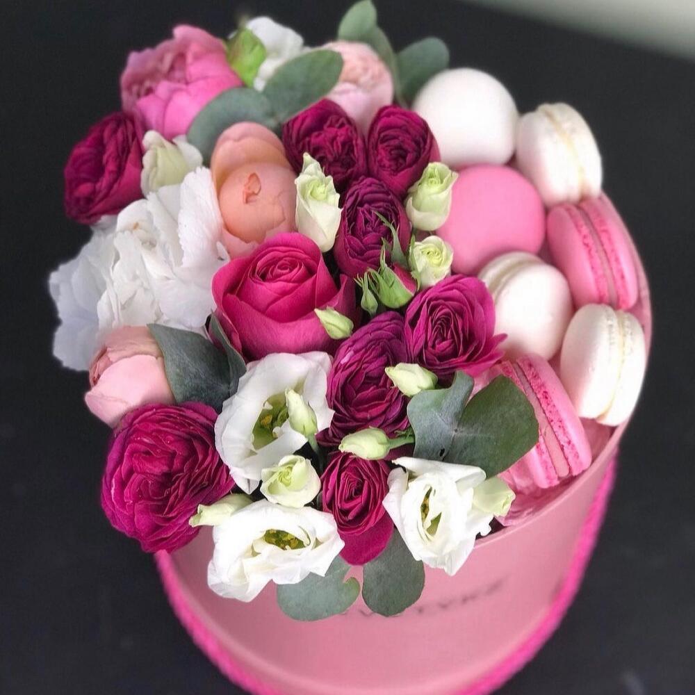 Rose - 4 pcs Bush rose - 2 pcs Eustoma - 2 pcs Pasta - 6 pcs