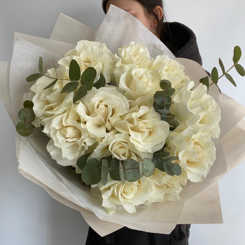Eucalyptus - 1 pcs openwork roses - 13 pcs