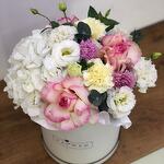 Astra - 1 pcs Hydrangea - 1 pcs Eucalyptus - 2 pcs Rose - 3 pcs Carnation - 2 pcs Eustoma - 1 pcs