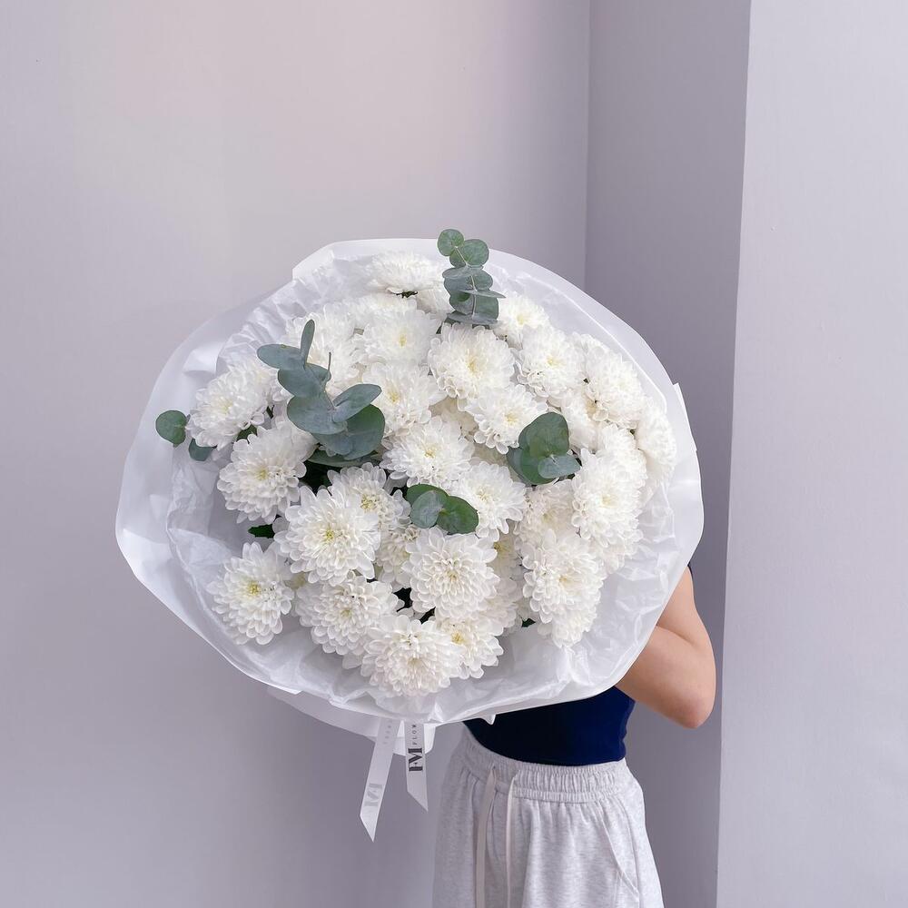 Eucalyptus - 1 pcs Chrysanthemum - 7 pcs