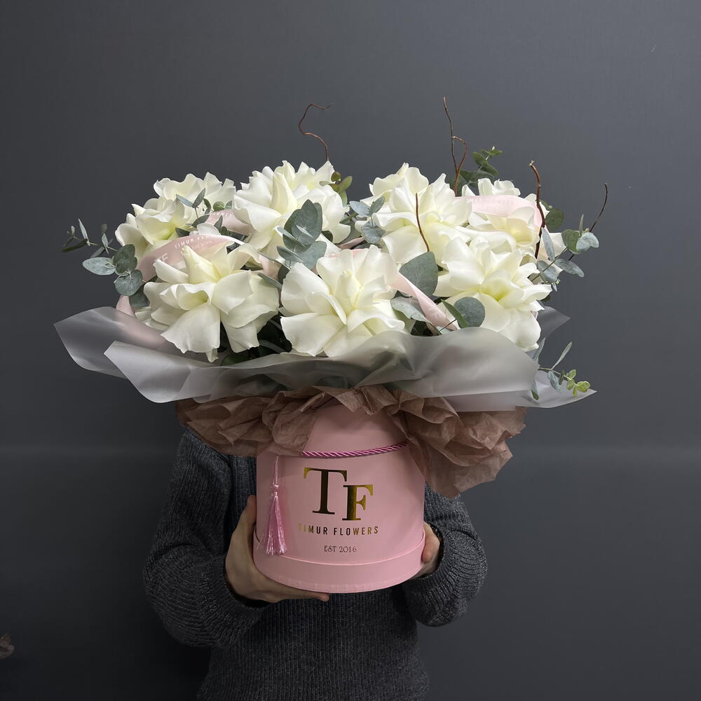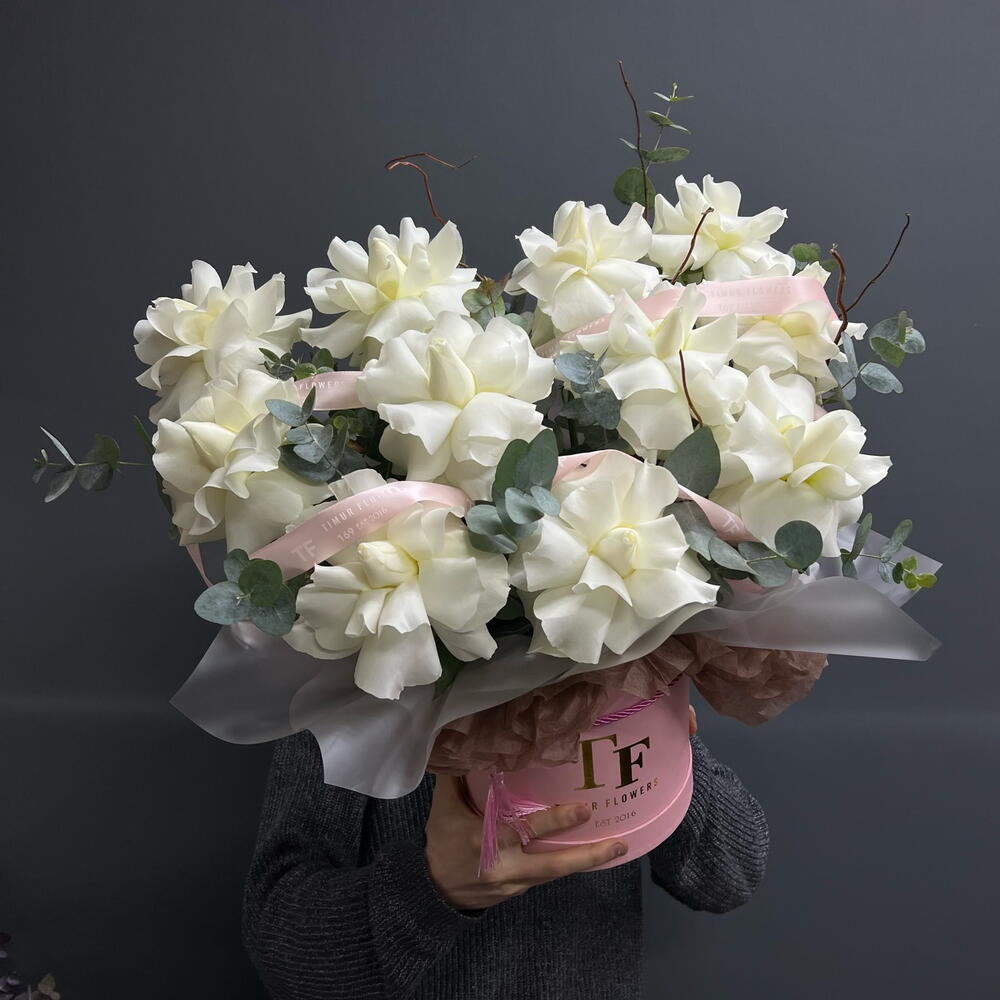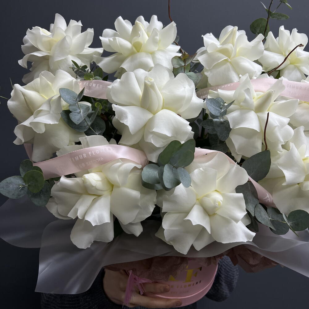 White French roses in a tube