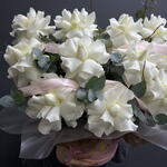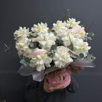 Букет сделали в точности как на фото и учли все пожелания. Записку прикрепили и доставили даже раньше назначенного времени. Спасибо за это и спасибо за прекрасное настроение именинницы.) Дополняю свой комментарий. Гортензия умерла уже к середине следующего дня, а остальные цветы стали сильно увядать. Так что как бы...букет был явно не свежий.