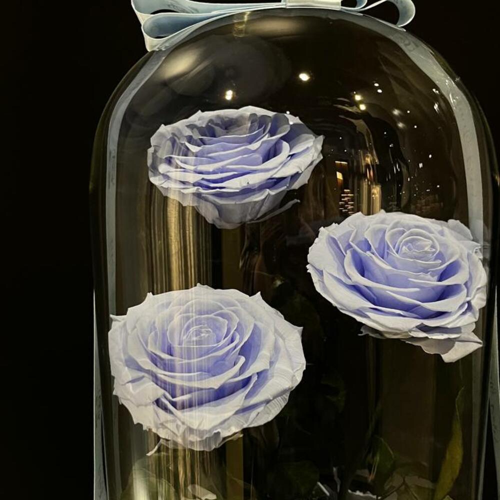 Этот товар - воплощение грациозности и изящества. Внутри стеклянной колбы находятся три розы небесно-голубого оттенка, прошедших процесс стабилизации. Такой цветок станет оригинальным украшением интерьера и подарком, способным удивить любого. Не увядающие розы подчеркнут вашу изысканность и вкус, став символом вечной красоты и нежности.