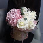 Hydrangea - 1 pcs Rose - 5 pcs Eucalyptus Mix - 3 pcs