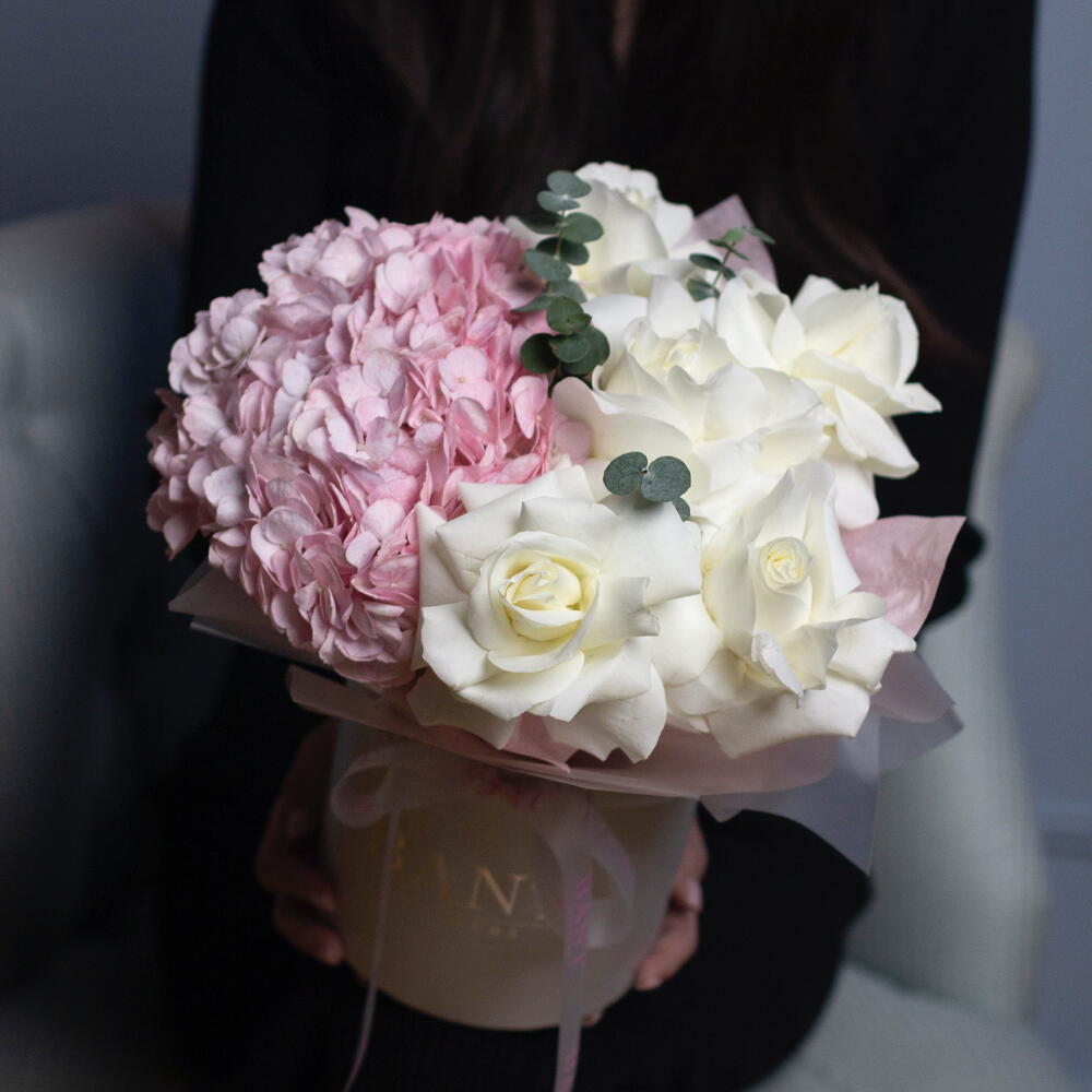 Hydrangea - 1 pcs Rose - 5 pcs Eucalyptus Mix - 3 pcs