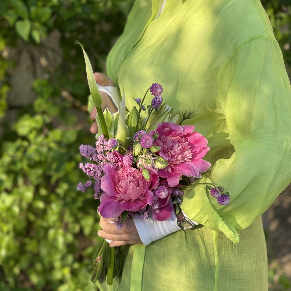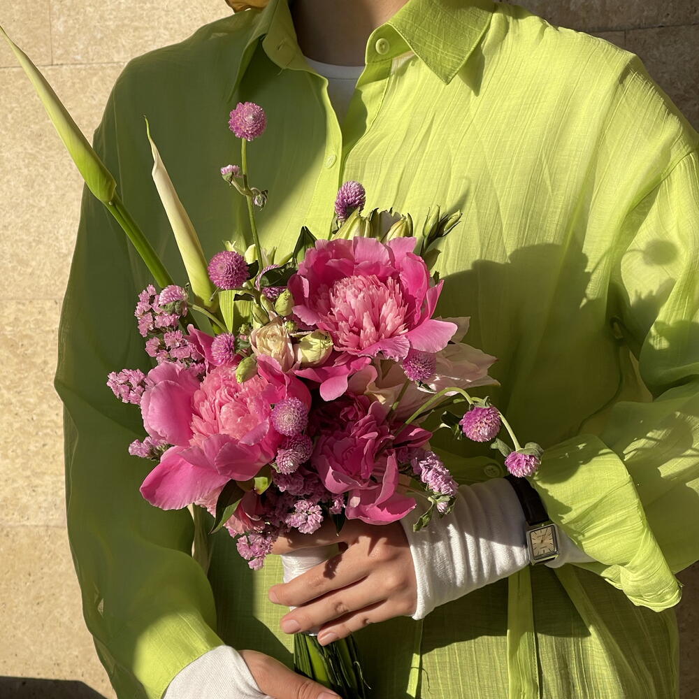Statice - 2 pcs Eustoma - 3 pcs calla - 3 pcs peonies pink - 3 pcs peony lily - 2 pcs