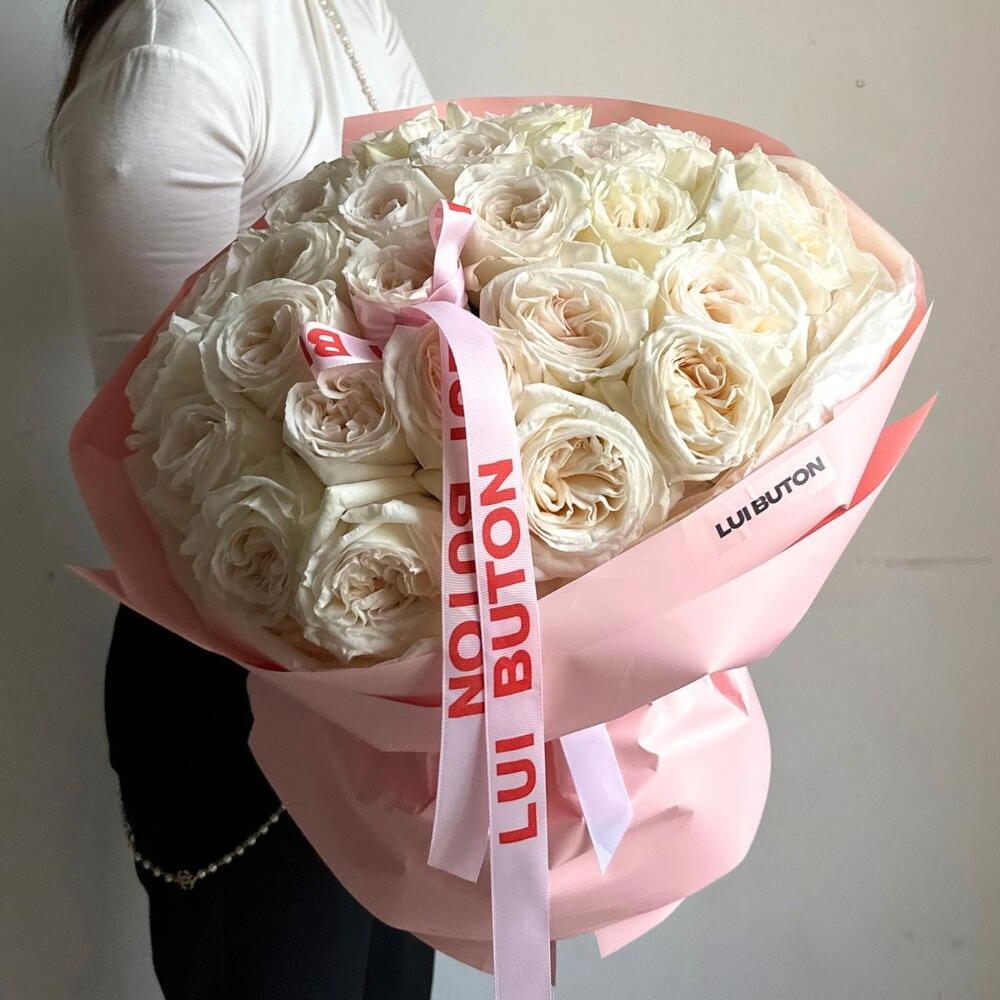 Пионовидные розы O’Hara — это баланс роскоши и естественности. Букет выглядит свежо, утончённо и всегда уместно