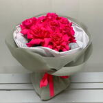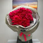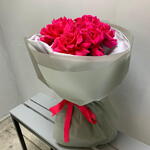 Rose crimson - 7 pcs paper tissue white - 4 pcs аква бумага серая - 4 pcs лента репсовая ярко-розовая - 1 pcs