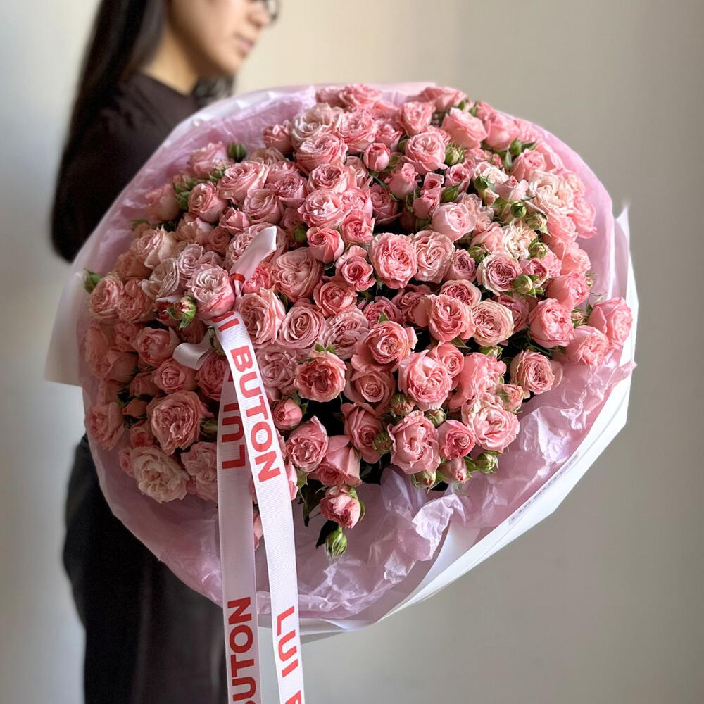 Нежный и изысканный букет из 25 кустовых роз сорта Бомбастик — это гармония мягких оттенков и утончённой формы. Каждая веточка раскрывается множеством аккуратных бутонов, создавая ощущение пышности и лёгкости одновременно