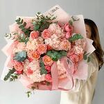 Красивый, пышный букет. Видно что свежий. Но, я просила положить пустую открытку чтобы самой подписать - но не положили. А так, все ок