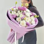 Букет из эустом и хризантем, наполненный гармонией и красотой. Универсальное решение для любого случая — от романтического вечера до торжества