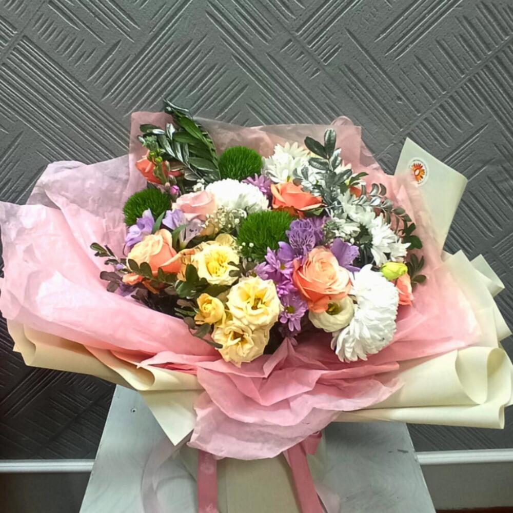 Букет ассорти из 9 видов цветов от цветочного магазина Оранж Алматы