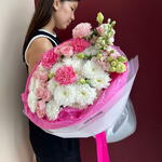 Delphinium - 1 pcs Eustoma - 2 pcs Dianthus - 3 pcs chrysanthemums - 5 pcs bush roses - 3 pcs