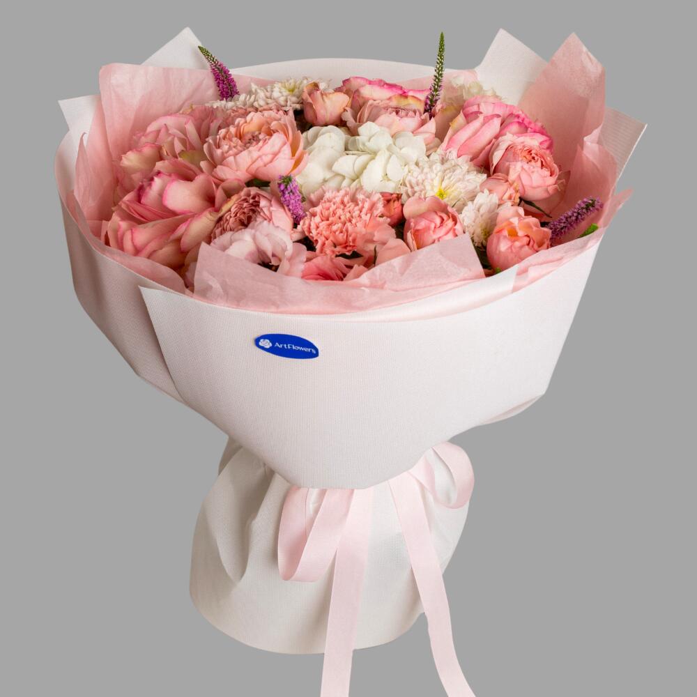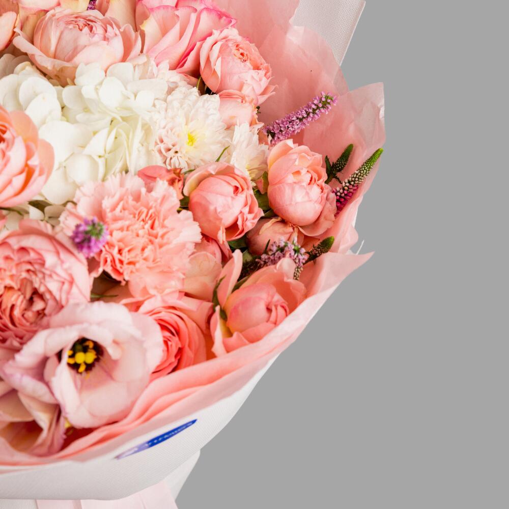 Veronika - 6 pcs Hydrangea - 1 pcs Lisianthus - 3 pcs Carnation - 2 pcs chrysanthemums - 2 pcs juliet spray - 4 pcs