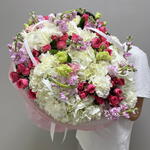 Hydrangea - 9 pcs Matthiola - 10 pcs Carnation - 9 pcs Eustoma - 5 pcs Bush rose peony - shaped - 9 pcs