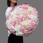 Состав: 20 гортензий, 15 кустовых роз, оформление. 💬 Великолепный объёмный букет для особого повода — как роскошная симфония лета в руках.