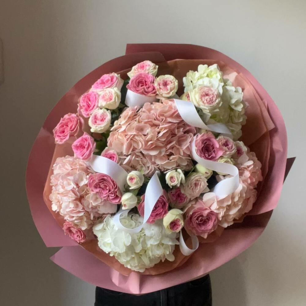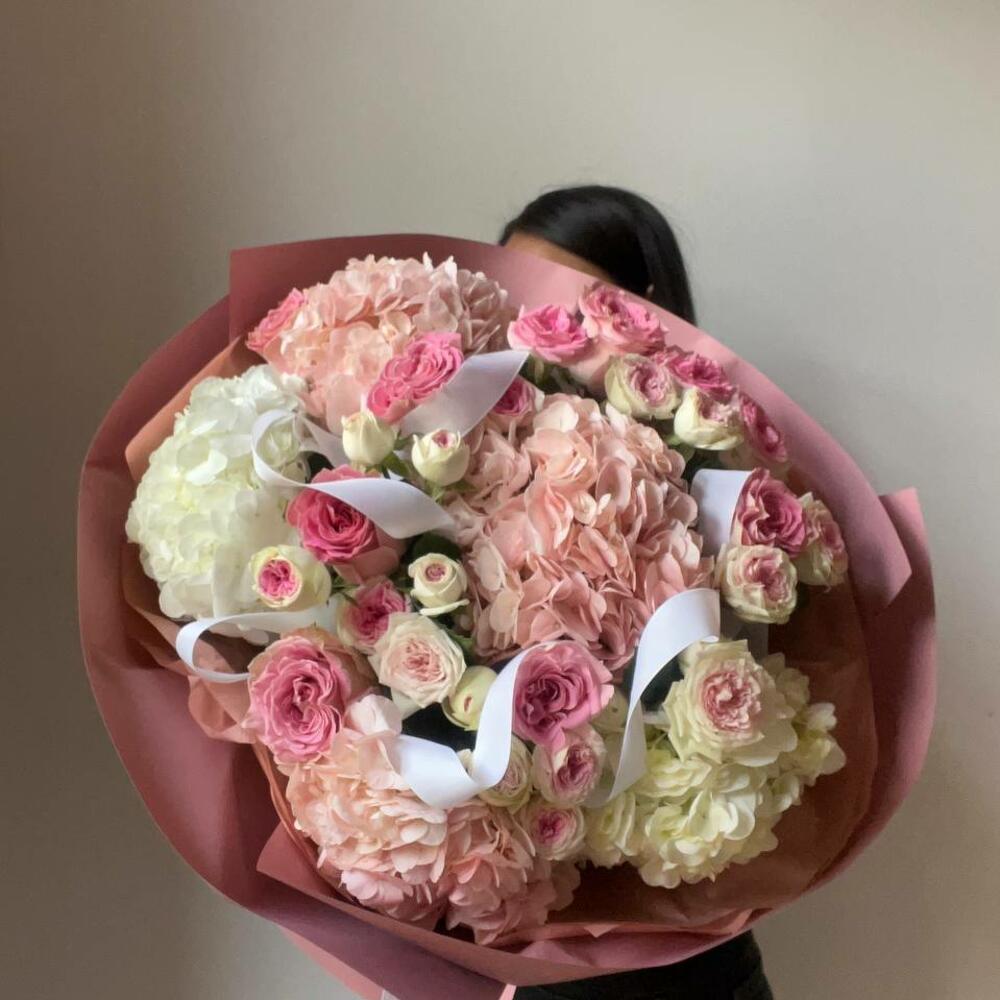 Hydrangea - 5 pcs Rose - 7 pcs Spray rose - 9 pcs
