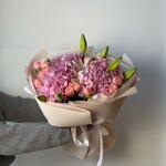Hydrangea - 3 pcs Lily - 2 pcs Bush rose - 4 pcs