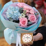 Hydrangea - 1 pcs Matthiola - 1 pcs Chrysanthemum bush - 1 pcs Eucalyptus - 3 pcs Rose - 3 pcs The language of the input text is Russian, and it translates to "Tweedie" in English. - 1 pcs