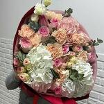Hydrangea - 3 pcs Carnation - 5 pcs Bush peony - shaped rose - 2 pcs eucalyptus - 1 pcs mandala rose - 7 pcs