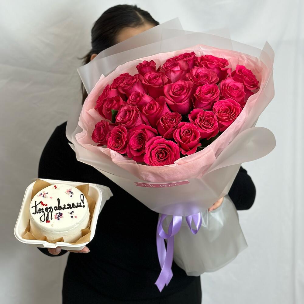 Букет фирменных роз Pink Floyd +бенто торт