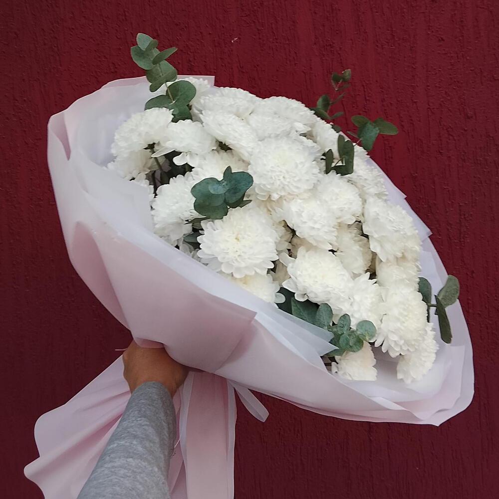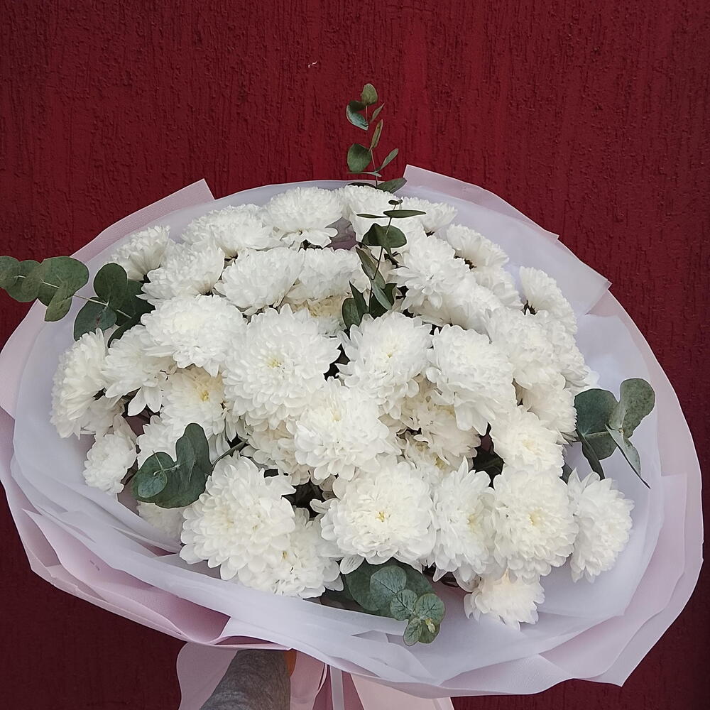 Букет который подойдёт на любое мероприятие. Ароматные хризантемы долго будут радовать своих получателей, так как это самый долго стоящий цветок.