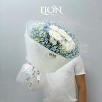 Chrysanthemum bush white - 2 pcs Blue hydrangea - 1 pcs Gypsophila blue - 2 pcs
