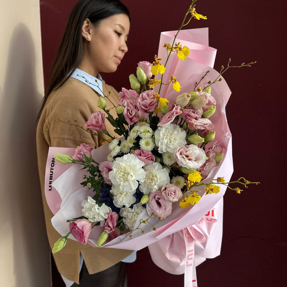 A bouquet with a "wow" effect from the very first second. A thoughtful composition, expressive texture and the lively movement of the flowers make it truly impressive.