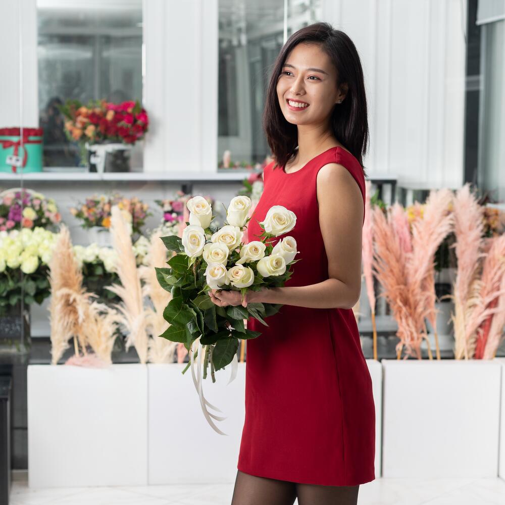 Bouquet of roses from 11 white pieces 80 cm high. Lovely fresh Dutch roses will add tenderness and a sense of romance.