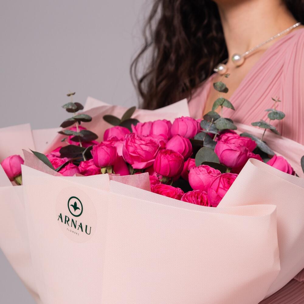 Букет из 15 премиальных пионовидных кустовых роз GISELLE