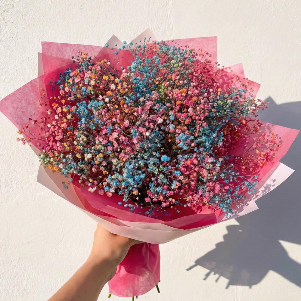 Букет из 25 гипсофил Сияние радуги — яркий радужный монобукет