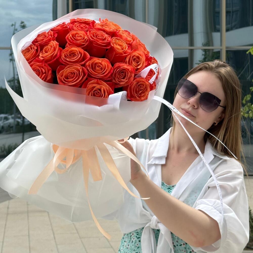 Букет из 25 оранжевых классических роз