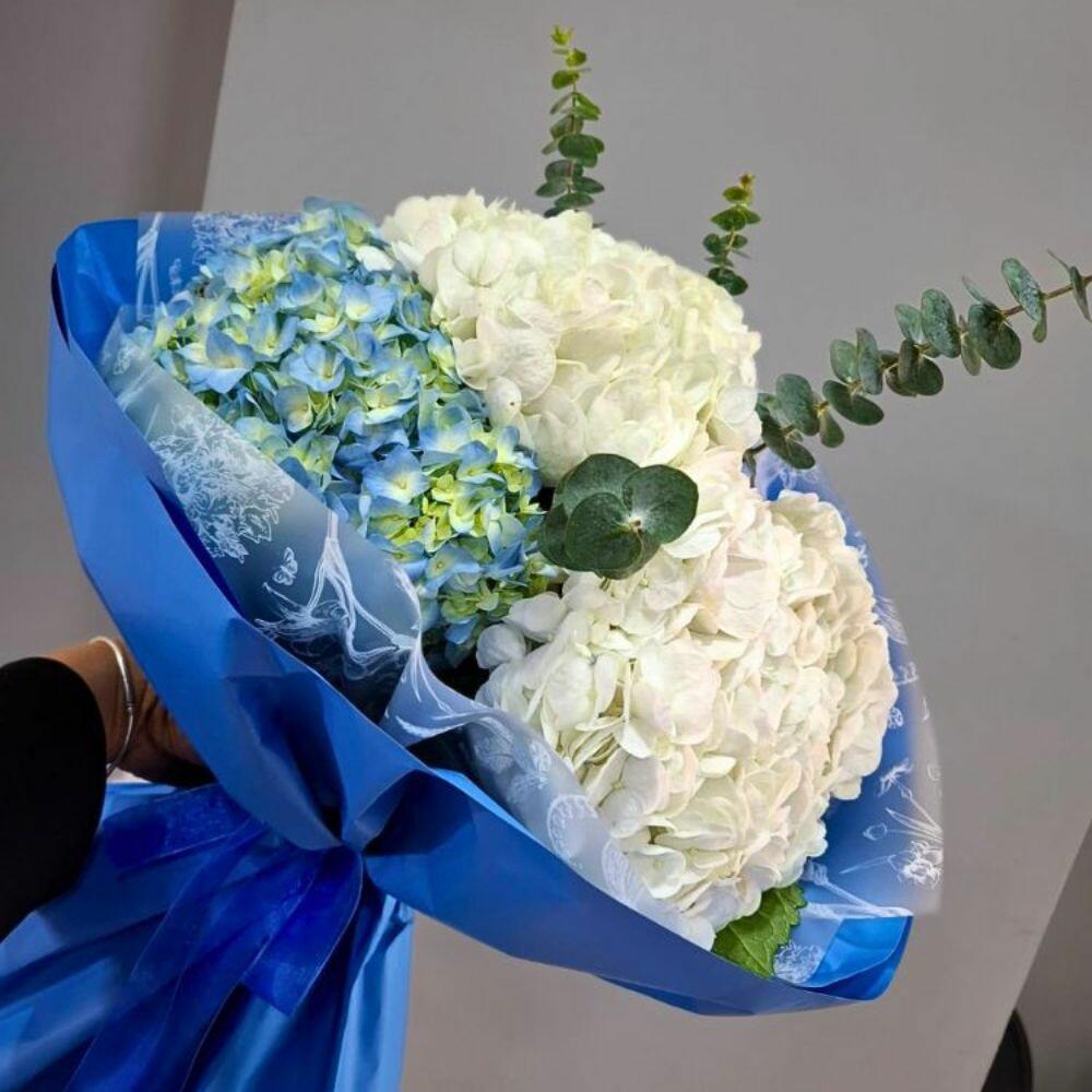 Букет из 3 Гортензий с эвкалиптом с доставкой по Алматы