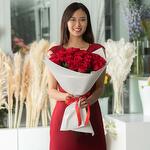 Bouquet of 35 red Dutch roses, 50 cm. Red roses will never go out of fashion, the perfect gift to declare your love. Or, such a bouquet can be given as a compliment, to congratulate someone on a special date. Choose rose bouquets with worldwide delivery, give pleasant moments to your loved ones. Our florists can create a beautiful and stylish bouquet arrangement. *Please, when ordering, indicate which arrangement you prefer, with ribbon or with aqua paper.