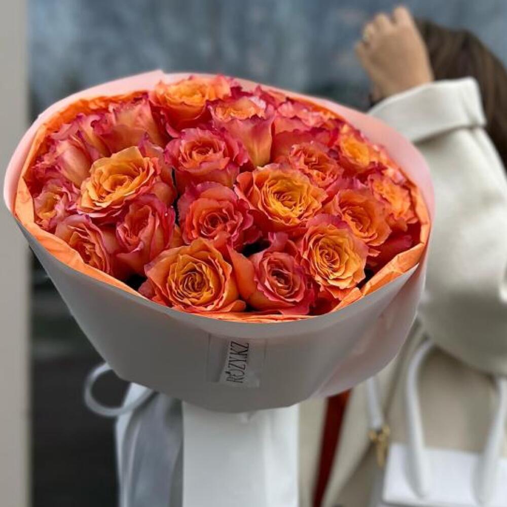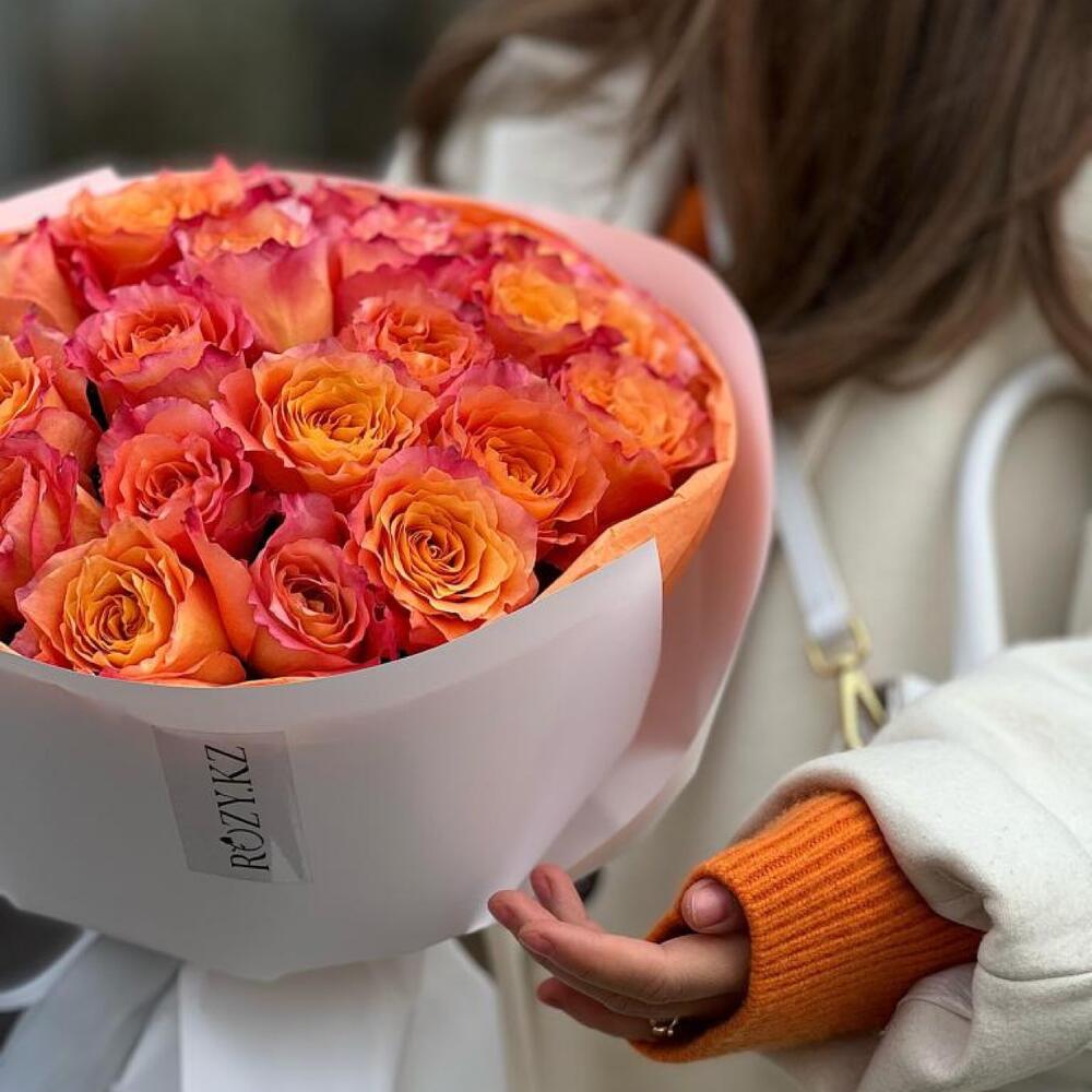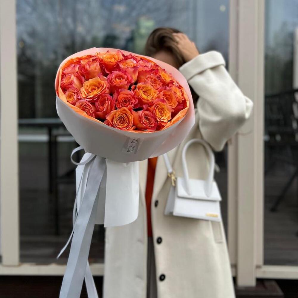 Букет из 35 огненных роз в фирменной упаковке