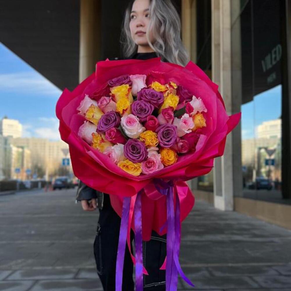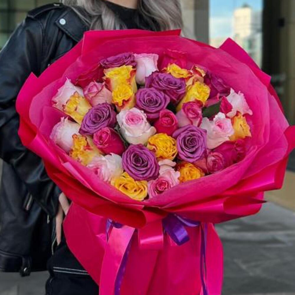 Букет из 35 ярких роз в фирменной упаковке (20.25)
