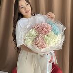 Красивый, пышный букет. Видно что свежий. Но, я просила положить пустую открытку чтобы самой подписать - но не положили. А так, все ок